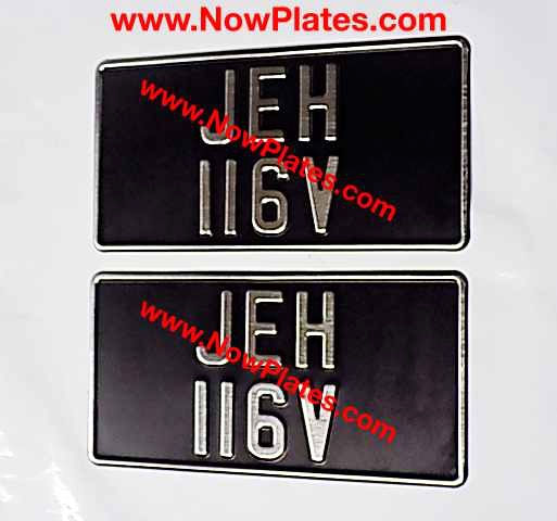 Pair of Black IRL Pressed Plates with Small No's and a Colour Choice 12"x6"ins